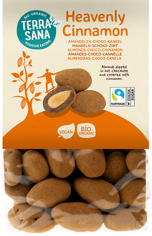 amandes enrobées de chocolat végétalien, parsemées de cannelle - 150 g